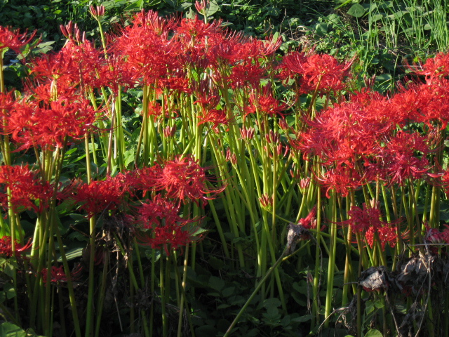 赤い花はそんなに好きじゃないんだけど曼珠沙華は特別。緑の草むらの中にある日突然ぱっと出現する辺りとか、花の形とか大好きです。